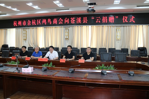 6月6日,杭州市余杭区鸬鸟商会为我县捐赠爱心援建款10万元。捐赠仪式以“云捐赠”方式进行。县领导刘俊峰(挂职)在我县捐赠会场参加捐赠活动。
