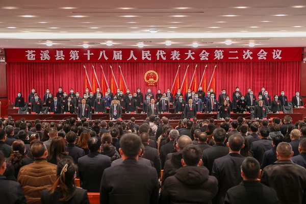 上午9时整,张世忠宣布苍溪县第十八届人民代表大会第二次会议开幕。全体起立,雄壮的中华人民共和国国歌在会场内齐声唱响。