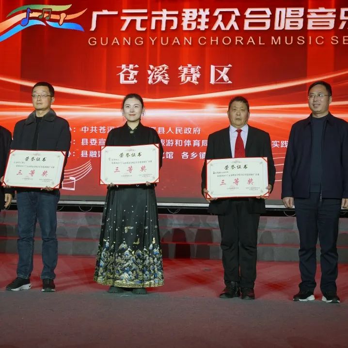经过现场激烈角逐,评委们认真评审,最终评选出一等奖1个、二等奖2个、三等奖3个、优秀组织奖8个,其中,县教科局合唱团荣获一等奖,将代表苍溪参加市级竞演。出席活动的领导现场为获奖者颁奖。